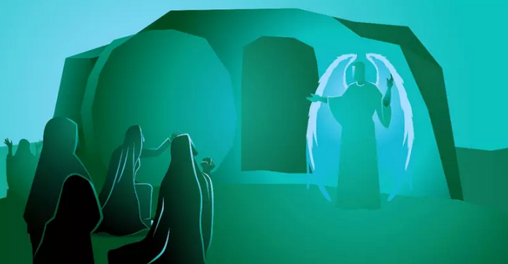 Les quatre récits de l'Évangile décrivent des anges au tombeau où Jésus a été ressuscité. Bien que de nombreux chrétiens soient familiers avec les événements de la résurrection et les anges déclarant qu '«Il est ressuscité», l'apparition des anges a suscité la peur et l'émerveillement chez les spectateurs.